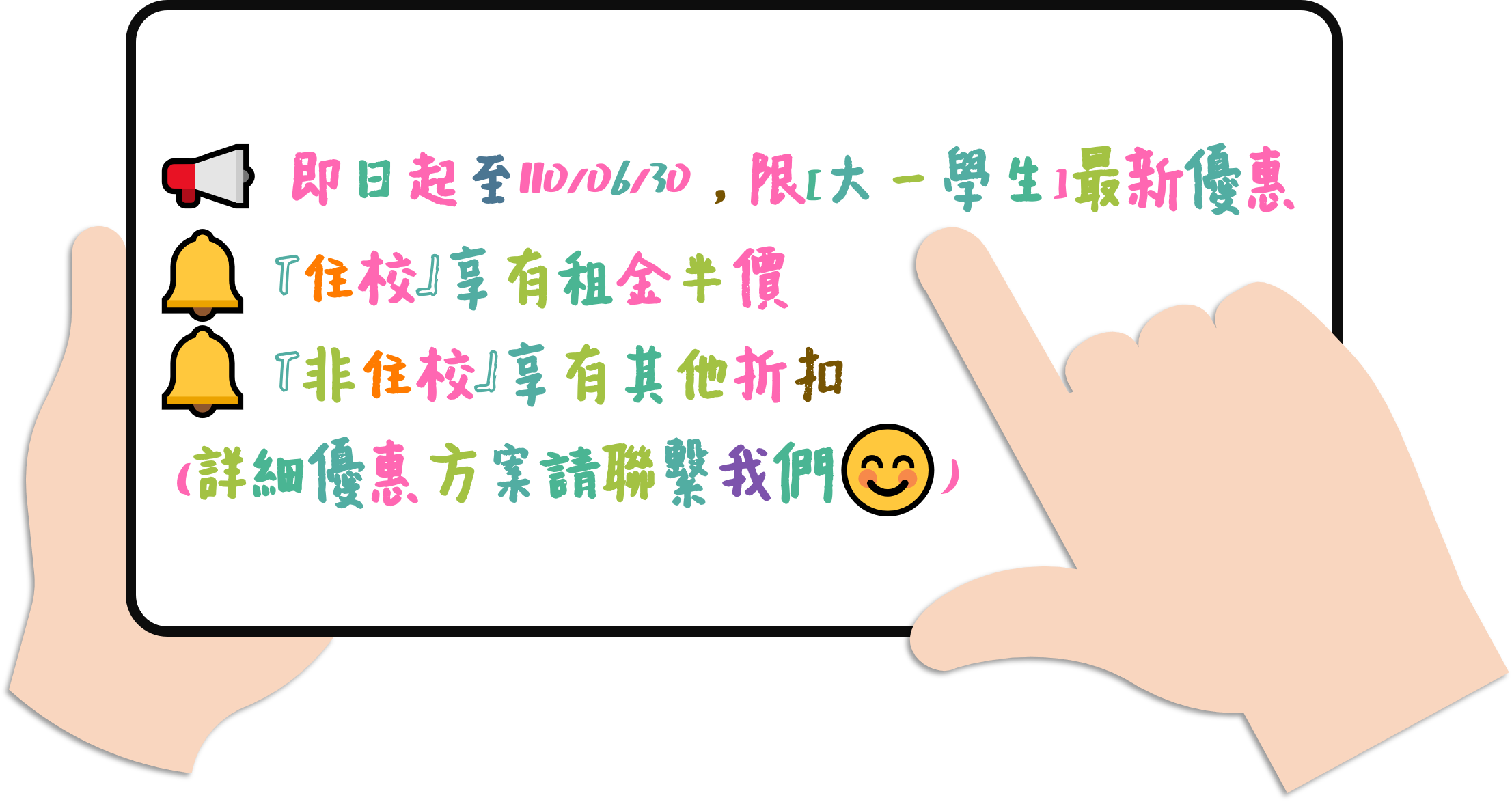 | 備註 | 此房型有獨立大露臺可看到校園日/夜景色,浴廁有對外窗,租金已包含水費、第四台、網路費、管理費、公共區域清潔與垃圾清運費用 |