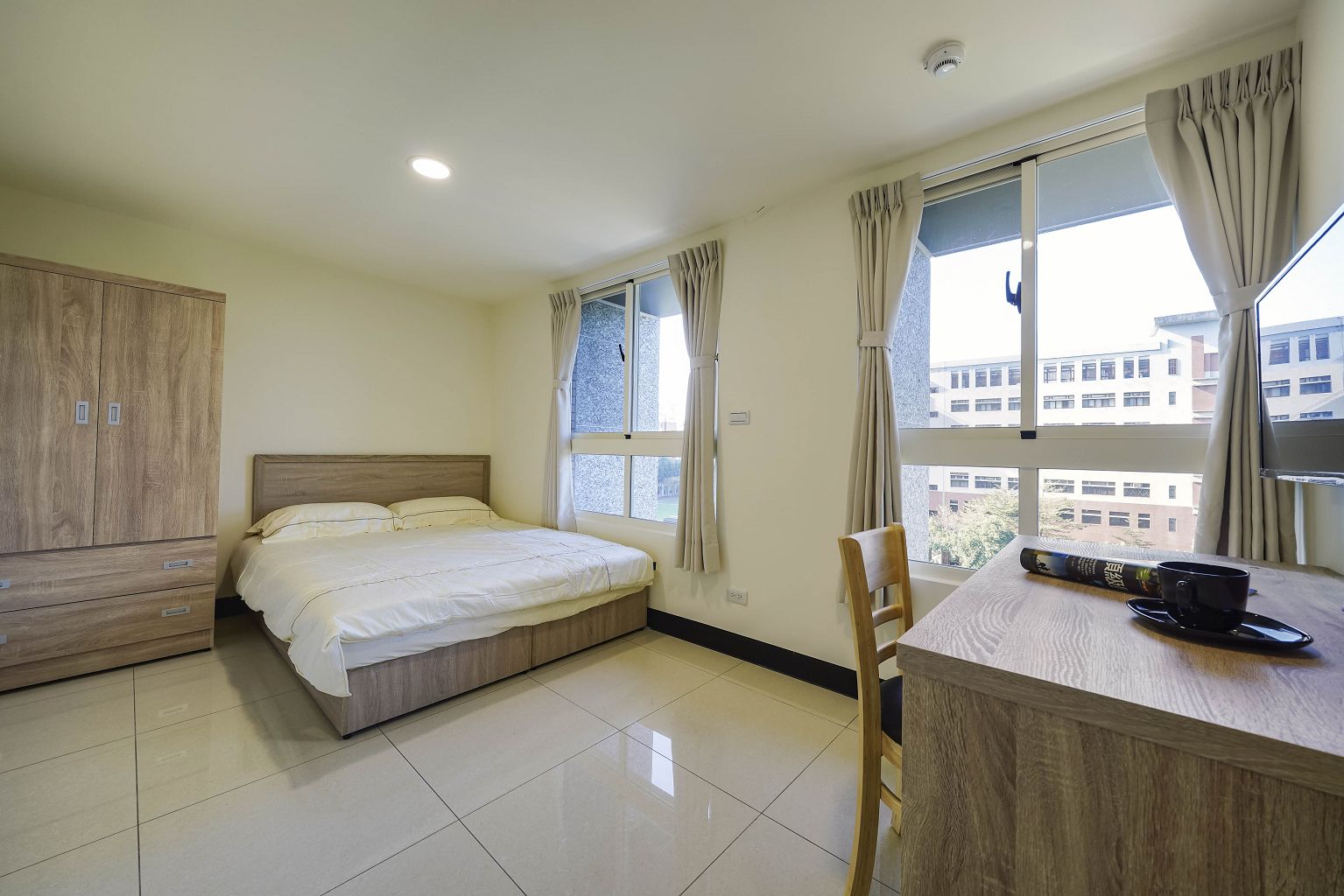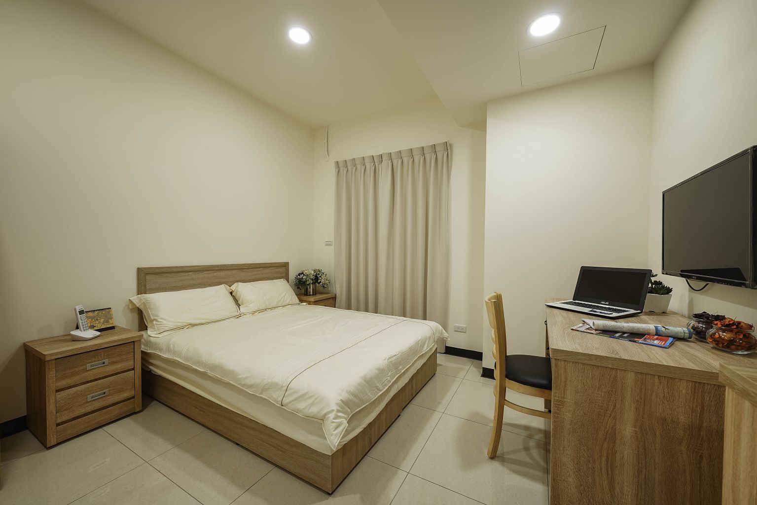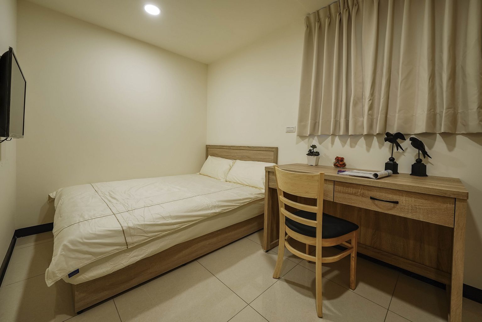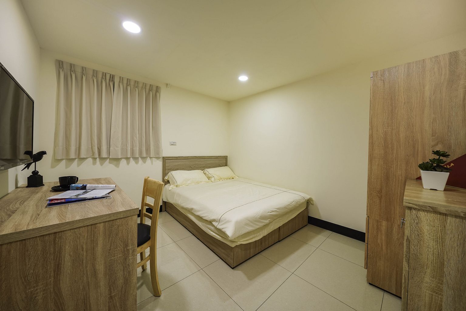 | 家具 | 床頭櫃、床架、雙人床、保潔墊、衣櫃、鞋櫃、窗簾、書桌、椅子 |
